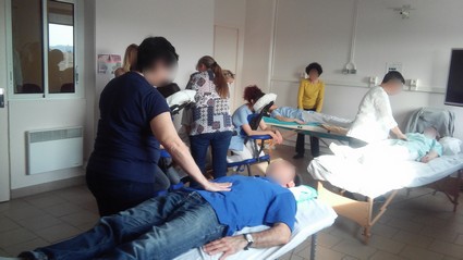 "Les Spécialistes en Shiatsu et étudiants d'IMAE sur les sites du Centre Hospitalier Intercommunal du Pays d'Aix lors des JNS 2018. Un grand merci à toutes les équipes du CHIAP pour leur acceuil".